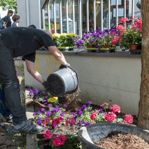 Durch die vielen Blumenspenden erfreut sich der Ottoplatz jetzt eines farbenfrohen Blumenbeetes, das an diesem Tag immer weiter wuchs und auch jetzt viele bewundernde Blicke von Passant*innen auf sich zieht.