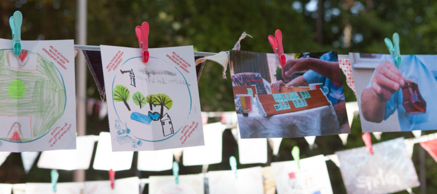 Die neu zugestaltenden Fassaden im Stadtfeld erzählen von Gemeinschaft und Nachbarschaft und greifen Szenen und Themen aus dem Stadtteil auf.