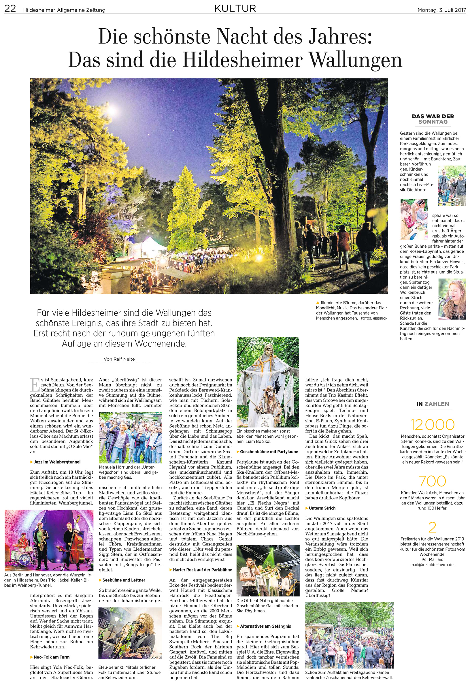„Die schönste Nacht des Jahres: Das sind die Hildesheimer Wallungen“ titelte die Hildesheimer Allgemeine Zeitung. Damit hat sie bestimmt nicht ganz Unrecht.
