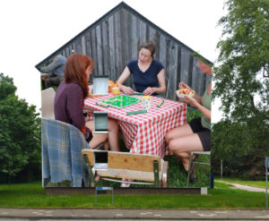 Für die Giebelfassade in der Triftäckerstraße 31 standen zwei Entwürfe von der britischen Künstlerin Helen Bur zur Auswahl. Ihre Kunstwerke sind bereits international bekannt. Vom 23. Oktober bis zum 30. Oktober hat sie die Fassade mit einer Szenerie aus dem Stadtfeld gestaltet. Helen Bur‘s Entwurf integriert die Menschen aus Stadtfeld ganz direkt in den künstlerischen Prozess.