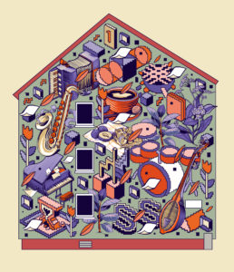 Für die Fassade in der Triftäckerstraße 63 hat sich das Künstler-Kollektiv bestehend aus The weird: DXTR + Rookie zwei Entwürfe überlegt. Vom 18. September bis zum 23. September hat das Duo im Stadtfeld ihr wimmelartiges Kunstwerk gestaltet. Durchsetzen konnte sich ihr Entwurf mit grünlichem Hintergrund mit Instrumenten, Picknick und Pflanzen.