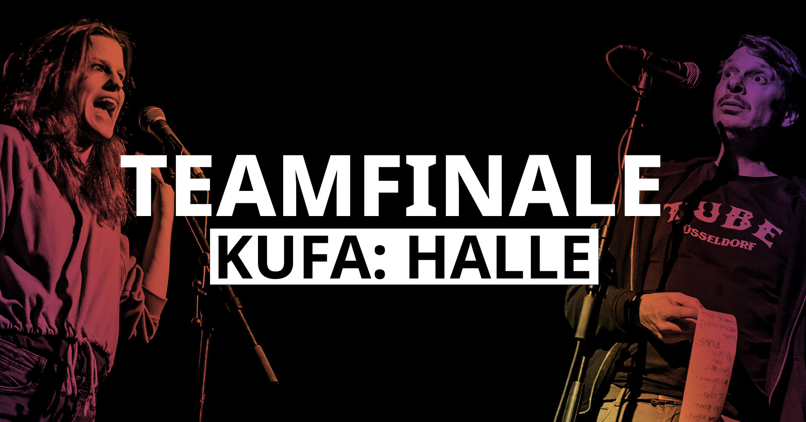 Es sind die Meisterschaften — das bedeutet gleich zur Eröffnungsgala ein emotionales und performatives Highlight. Die KuFa hat gerufen, die Teams sind gekommen… und die amtierenden und zweifachen deutschsprachigen Meister im Team WORTWIN & SLAMSON aus Berlin begleiten das Spektakel!