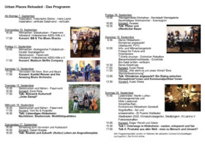 Wie kann man eine Stadt nachhaltig gestalten? Was macht sie lebenswert? Um diese Fragen dreht sich das Projekt „Urban Places Reloaded“ – und ihr seid eingeladen, euch zu beteiligen und Hildesheim mitzugestalten. Denn vom 10.-20. September verwandeln KUFA und Universität Hildesheim den Angoulêmeplatz in das, als was er ursprünglich mal gedacht war: Ein Ort des Austausches zwischen Bürger*innen, Politik und Kultur. Dabei beschäftigen sich die Hildesheimer Platzgespräche mit der Gestaltung und Nutzung öffentlicher Räume, mit Nachhaltigkeit, Klimaschutz, Mobilität, Kultur. Kurz: mit Zukunftsfragen zum Stadtklima Hildesheim.