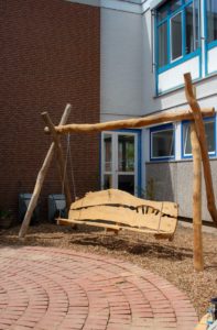 Die Geschwister-Scholl-Schule hat nun wieder einen schönen Innenhof! Die letzte Woche vor den Sommerferien wurde zur Bauwoche: Schüler*innen der Sprachlernklasse und Lehrer*innen packten gemeinsam an, angeleitet und unterstützt von einem Projektteam der Kulturfabrik. Es entstanden neue Sitzmöbel aus Robinienholz, neue Beete wurden angelegt und bepflanzt und eine hängende Bank errichtet.