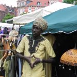 Händler bieten eine Vielfalt von Stoffen, von Seide aus Indien bis zu handgewebtem Leinen aus Mali, Gewürze duften verheißungsvoll und allerlei Schmuck und Gewerk von Silberschmuck aus Marokko bis zu Lampen aus Ägypten, wird zum Kauf geboten. Die Waren stammen aus dem arabischen Raum und vom afrikanischen Kontinent. Alle Waren transportieren ein Stück ihrer Geschichte und haben teils große Entfernungen mit der KARAWANE zurückgelegt. Das Stöbern und Feilschen lohnt sich also gewiss.