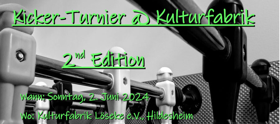 Am Sonntag, den 24. März, hat das erste Turnier einer geplanten Kicker-Turnier-Reihe in der Kulturfabrik stattgefunden. An diesem haben 30 Spielende verschiedener Spielstärken teilgenommen und haben das Event somit zu einem vollen Erfolg gemacht. Geplant ist es ein Turnier im Quartal zu veranstalten, also noch drei kommende in diesem Jahr.
