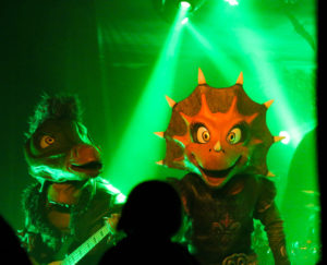 Schon vor Wochen war die Show von Heavysaurus restlos ausverkauft – und das aus gutem Grund! Die Dino-Metalband sind mit ihrer neuen POMMESGABEL TOUR 2024 in ganz Deutschland unterwegs und haben auch erstmalig Halt in Hildesheim gemacht und waren in der KUFA zu Gast! Mit knapp 400 Besucher*innen war das Konzert am 9. Februar ein riesen Erfolg und erfreute nicht nur die kleinen Fans. Auch den Eltern stand die Freude ins Gesicht geschrieben, die ihre Vorliebe an Heavymetal & Rockmusik an ihre Kleinen weitergeben wollen.
