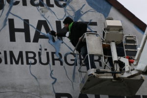 Für die Hausfassade in der Bernwardstraße 32 hat sich hingegen der Künstler Welf Schiefer mit den meisten Stimmen durchgesetzt. Das Gerüst steht, der Künstler ist mit der Gestaltung des Kunstwerks bereits im vollem Gange.