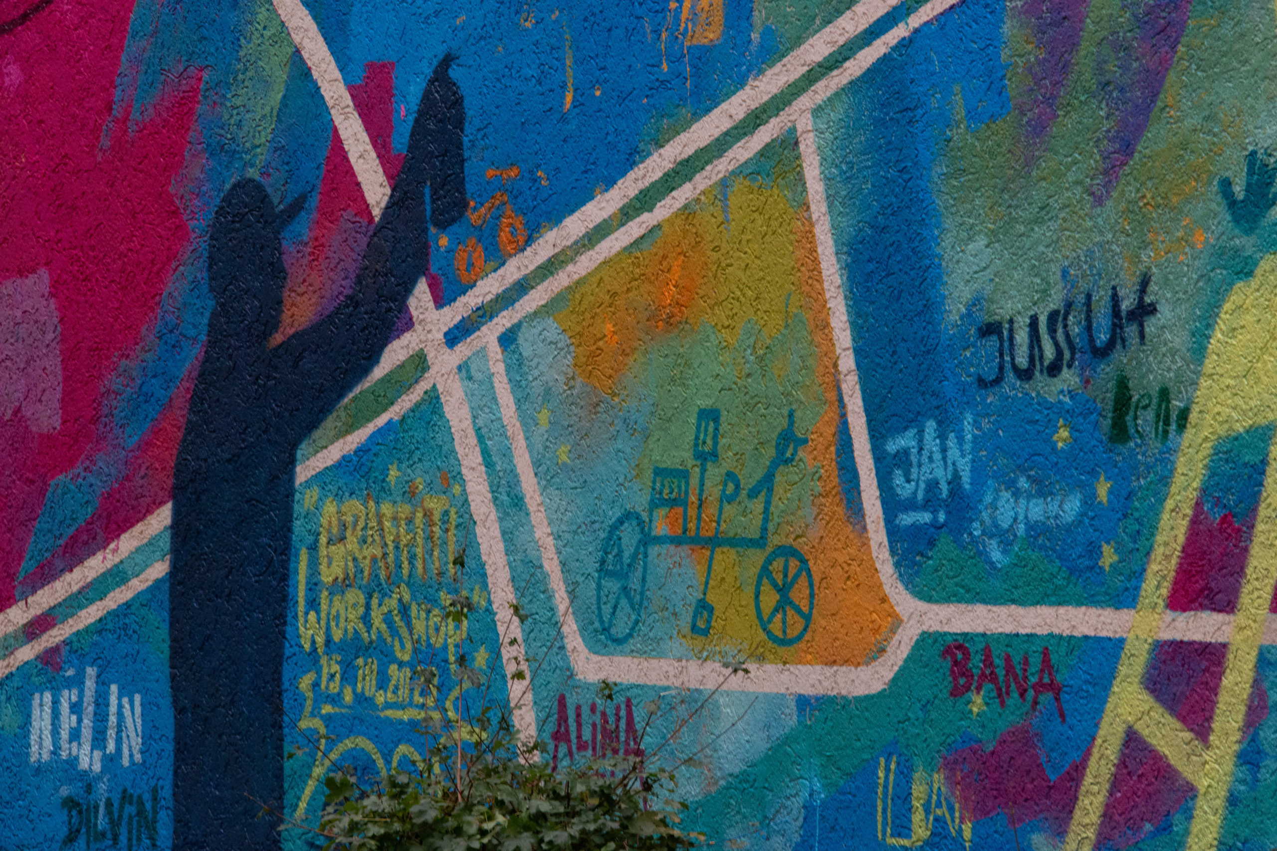 Samstag und Sonntag, 14.10. & 15.10. ab 14 Uhr: Graffiti sprayen. Der Graffiti-Künstler Ole Görgens zeigte, wie eine bunte Fassade mit Malerrolle und Spraydosen gestaltet wird. (Triftäckerstraße 61)